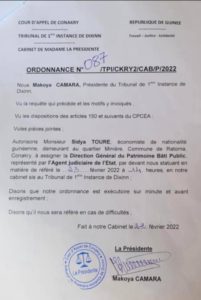 GUINEE- Récupération des biens de l’état : Sidya Touré obtient enfin l’autorisation du tribunal de première instance de Dixinn, de poursuivre la direction générale du patrimoine bâti public, qui sera représentée par l’agent judiciaire de l’État (copie)