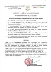 Guinée: voici la décision de IDI AMIN qui suspend Colonel Balla Samoura de ses fonctions jusqu’à nouvel ordre (copie)