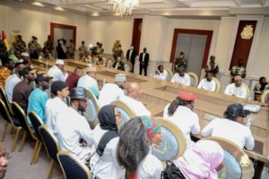 Le Président de la Transition, le Colonel Mamadi Doumbouya a reçu dans l’après-midi de ce vendredi, 22 avril 2022 au Palais Mohammed V, le Club des Artistes Engagés pour l’Humanitaire.