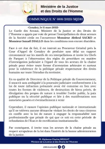 Le ministre de la Justice Alphonse Charles Wright a désapprouvé samedi l’interpellation d’Abdoul Lah Sacko et Ismael Diallo, deux acteurs de la société civile dans « les conditions non encore élucidées ».