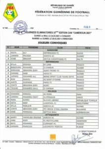 Au compte des 5è et 6è journées des éliminatoires de la Can Cameroun 2021, le coach du Syli National de Guinée, Didier Six, a publié jeudi 11 Mars, la liste des 23 joueurs sélectionnés contre les Aigles du Mali (24 mars à Conakry) et les Brave Warriors de la Namibie (28 mars à Windhoek)…