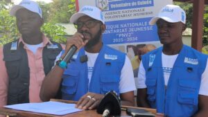 Le centre SCAD-KINDIA a abrité ce jeudi 18 décembre 2025, la cérémonie du lancement de la formation de 100 jeunes volontaires agents de paix et de cohésion sociale. Ce programme s’inscrit dans le cadre du renforcement de la capacité des acteurs locaux dans le maintien de la paix dans leurs localités respectives. Cette cérémonie a connu la présence de la representante du Programme des Nations Unies pour le Développement (PNUD), Mme Fatoumata Kaba, le directeur de cabinet du gouvernorat de Kindia, le directeur du centre SCAD-KINDIA, le capitaine Ibrahima Kaba, le representant du France Volontaires, Monsieur Thomas . Dans sa prise de parole, la representante du PNUD a d’abord remercié l’ANVJ pour la qualité de la mobilisation des jeunes avant de lancer une invite aux jeunes de prêter une oreille attentive pour bien capter les directives des différents formateurs afin de pouvoir les transmettre en actions sur le terrain dans le cadre de la sensibilisation sur la paix. Mme Kaba a clôturé sa communication en réitérant l’engagement du PNUD à accompagner le gouvernement guinéen dans la mise en œuvre de tous les programmes d’encadrement de la jeunesse.