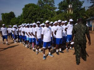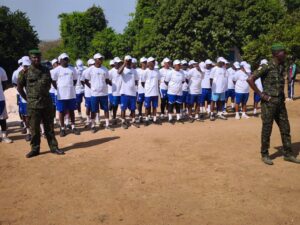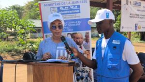Representant Monsieur le Ministre de la jeunesse, Mamadou Cellou Baldé, le DG de l’ANVJ, Mamadou Macka Baldé a dans son discours du lancement s’est tout fait le devoir de rendre un vibrant hommage à Monsieur le Président de la Republique, son Excelence Mamadi DOUMBOUYA et tout son gouvernement à sa tête le premier ministre Amadou Oury BAH pour le soutien quotidien en faveur de la jeunesse guineenne et du volontariat en particulier. Dans le même sciage, le DG a rappelé aux jeunes toute l’importance de ce projet pilote entièrement financé par le Programme des Nations Unies pour le Développement (PNUD) en ces termes : << cette formation civilo-militaire de 10 jours sur le civisme, la cohésion sociale, la paix, l’unité nationale vise à renforcer vos capacités en matière de vivre ensemble. Les modules porteront sur les thématiques de fort impact communautaire>>.