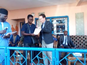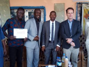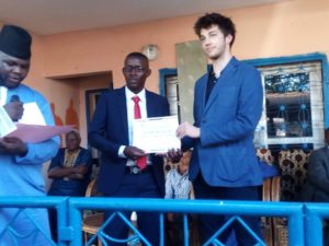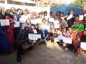 Activité ANVJ : Sous le présidence du directeur général adjoint de l’agence nationale de volontariat jeunesse, Macka Baldé, la cérémonie de cloture des activités de 4 Jours d’atelier de formation de 50 Jeunes leaders et membres des ONG locales sur l’entreprenariat social et solidaire s’est tenue dans les locaux de l’ESPACE « FRANCE VOLONTAIRES GUINÉE », ce jeudi 06/juin 2019 à 16h00. Le montage de projet et l’accompagnement des ONG etaient les thématiques abordées avec le formateur (benevole) MR BENOIT MATHIEUX DE L’ONG IADE France en appui à l’ONG VISION CONSEIL. C’est en présence du représentant de l’Ambassade de France en Guinée, le représentant Pays du mérite international Guinée, et d’autres PTF que les participants ont reçus leurs attestations, suivie d’une collation.