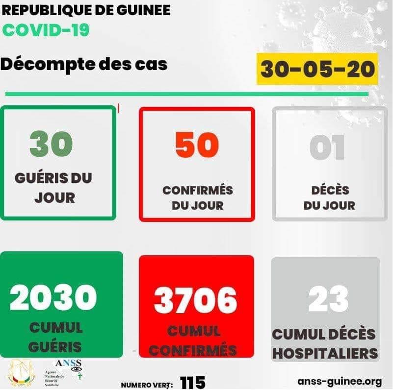 Coronavirus en Guinée : 50 cas du jour et 01 décès A LA UNESANTÉ By LIBREOPINIONGUINEE.COM Last updated Mai 30, 2020 0