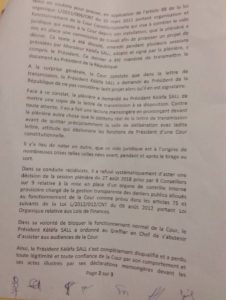 Cour Constitutionnelle : une motion de défiance contre le président Kèlèfa Sall (document)