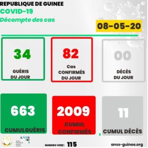 Covid-19 : la Guinée dépasse la barre de 2000 contaminée. 82 cas confirmés du jour ! A LA UNESANTÉ By LIBREOPINIONGUINEE.COM On Mai 8, 2020 0