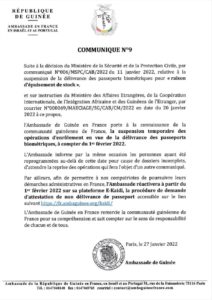 Délivrance des passeports : communiqué de l’ambassade de Guinée en France A LA UNEINTERNATIONALSOCIÉTÉ By LIBREOPINIONGUINEE.COM On Jan 27, 2022 0