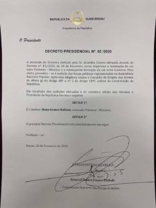 Guinée Bissau : après son installation, le Général Umaro Embalo Cissoko nomme un premier ministre (décision)
