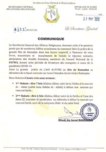 Guinée : Communiqué du secrétariat général des affaires religieuses A LA UNESOCIÉTÉ By LIBREOPINIONGUINEE.COM On Mai 22, 2020 0 Libreopinionguinee, vous propose de lire le communiqué du secrétariat général des affaires religieuses ci-dessous