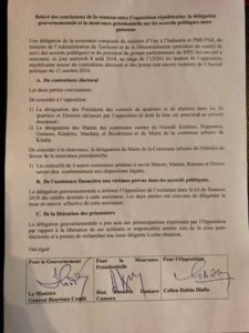 Depuis 2010, plusieurs accords ont été signés entre les deux, mais sur le terrain rien n’a été concrétisé. La signature d’un accord en catimini, ce mercredi soir du 08 août 2018 à la veille d’une manifestation projetée par l’opposition en dit long sur la magouille qui caractérise le fonctionnement et la récupération politique en Guinée. Tenez-vous bien ! Après les tractations, les protagonistes se présentent devant la presse, Amadou Damaro prend la parole et commence à planter le décor. Dès qu’il s’avance un peu plus dans les détails, le chef de file de l’opposition Cellou Dalein le stoppe et recadre certains passages. Tout de suite le compte rendu est interrompu et on repart à nouveau pour rediscuter et revoir un peu plus clair la manière de partager le magot.