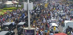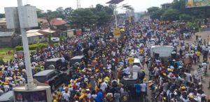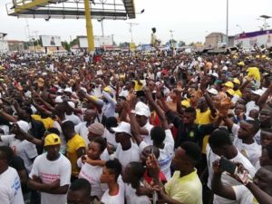 De retour d’une mission à Sotchi en passant par Paris, le président guinéen Alpha Condé a eu droit à un accueil digne de son rang à Conakry ce jeudi 31 octobre 2019. Les populations guinéennes ont réservé un accueil triomphal au chef de l’État pour lui signifier leurs adhésions à sa cause. On pouvait estimer à plus de 2 Millions de personnes qui se sont massées tout au long de l’autoroute de l’aéroport Conakry Gbessa, jusqu’au palais sekhoutoureya en passant par le palais du peuple. Il faut noté que plusieurs personnes interrogées par Libreopinionguinee affirment leurs impressions pour cette mobilisation du peuple de Guinée.