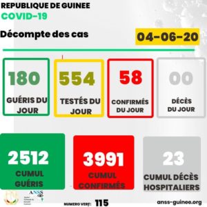 Guinée : Voici la situation du Coronavirus en date du 04 juin 2020 A LA UNESANTÉ By LIBREOPINIONGUINEE.COM On Juin 5, 2020 0