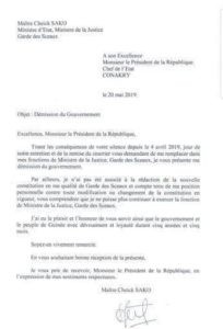De source proche du Ministère de la Justice, Cheick Sako a démissionné de son poste. Le désormais ancien chef de département de la Justice a donné l’exclusivité aux médias étrangers dont Jeune Afrique. Selon JA, c’est le 20 mai dernier que Me Sako a démissionné depuis Montpellier où il se trouve en ce moment. Dans son courrier adressé au chef de l’État, rapporte le journal panafricain, entre autres motifs, il justifie sa décision par son opposition à toute modification constitutionnelle. « Tirant les conséquences de votre silence depuis le 4 avril 2019, jour de notre entretien et de la remise du courrier vous demandant de me remplacer dans mes fonctions de ministre de la Justice, garde des Sceaux, je vous présente ma démission du gouvernement », écrit Cheick Sako -cité par JA- dans un courrier adressé au président Alpha Condé le 20 mai dernier, que ce dernier a réceptionné.