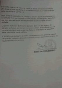 Cette décision, selon lui, est prise sur la base de l’évolution de la situation épidémiologique de la Covid-19 dans le pays et le risque que représente les rassemblements pour les prières nocturnes collectives des 10 derniers jours du mois de Ramadan, au cours desquels de potentiels risques de contamination peuvent survenir.