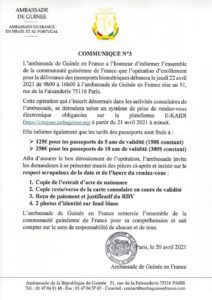 Urgent : Communiqué de l’ambassade de Guinée en France concernant l’enrôlement des guinéens pour les passeports biométriques